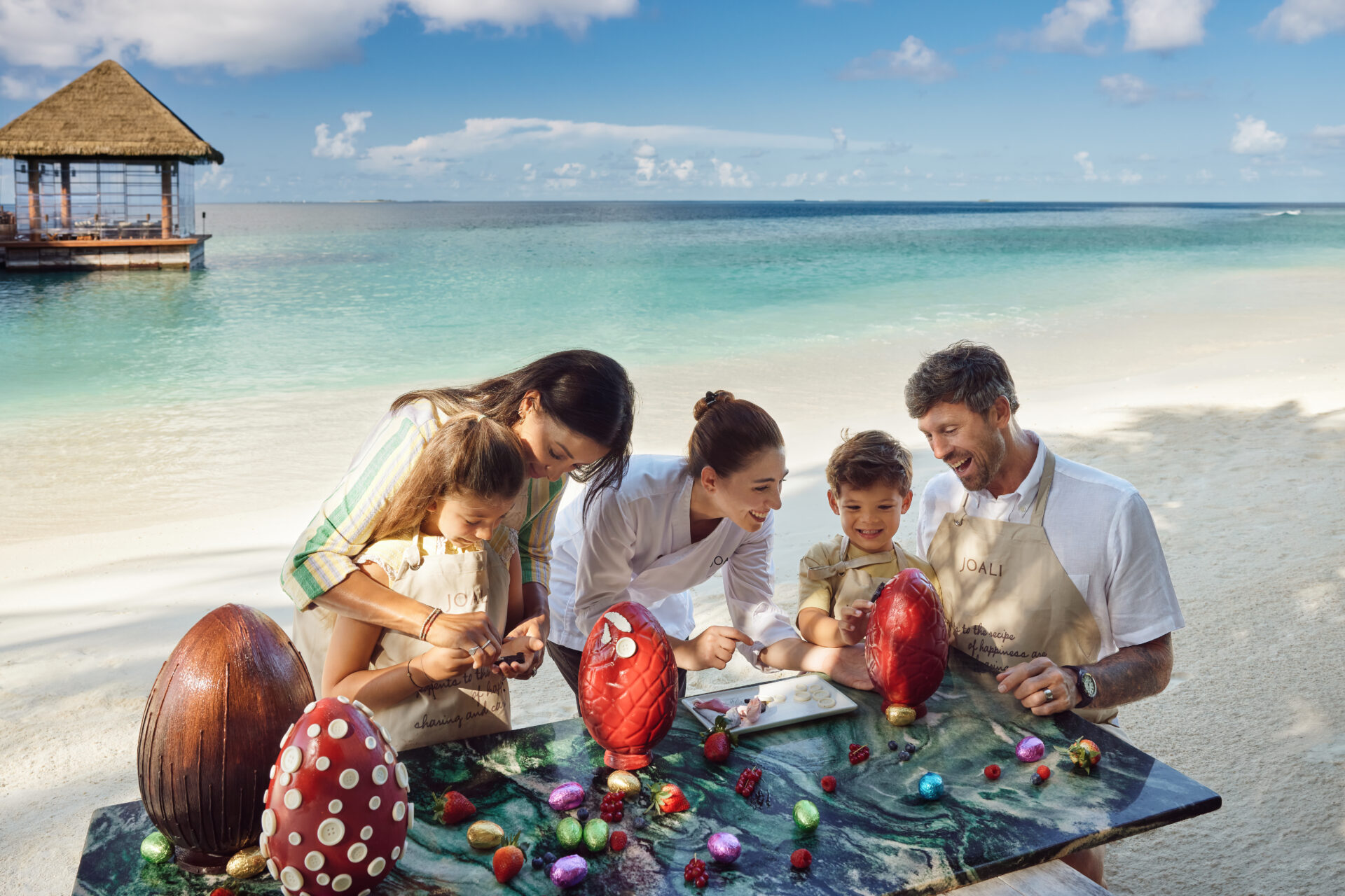 JOALI Maldives — первый и единственный курорт на Мальдивах, где искусство становится полноценной частью путешествия. В этом пасхальном сезоне гостей JOALI ждет еще больше творческих и образовательных мастер-классов, на которых они смогут наслаждаться искусством с заботой об экологии — мастер-классы по гончарному искусству, превращение стеклянных бутылок в расписные вазы, занятия живописью и, конечно, украшение пасхальных яиц и шоколадных кроликов.