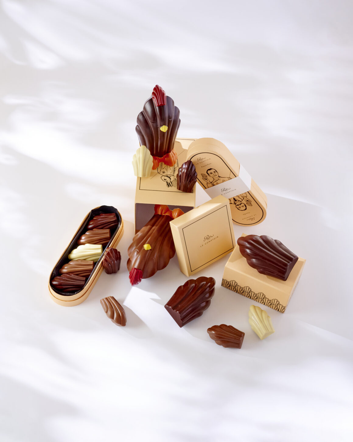 В праздничную коллекцию также вошли: “Сумасшедшие пасхальные яйца” — мадленки величиной с гусиное яйцо со скорлупой из темного шоколада и миндальным пралине внутри и два набора из пяти пасхальных мадленок — с начинкой из лесного ореха и ассорти из темного шоколада с миндальным пралине (2 шт.), молочного шоколада с пралине из лесного ореха (2 шт.) и белого шоколада с кокосовой начинкой (1 шт.). Десерты доступны в продаже до 15 апреля в бутике сладостей Ritz Paris Le Comptoir по адресу 38, rue Cambon, 75001, Paris. Оформить предзаказ можно на сайте www.ritzparislecomptoir.com.