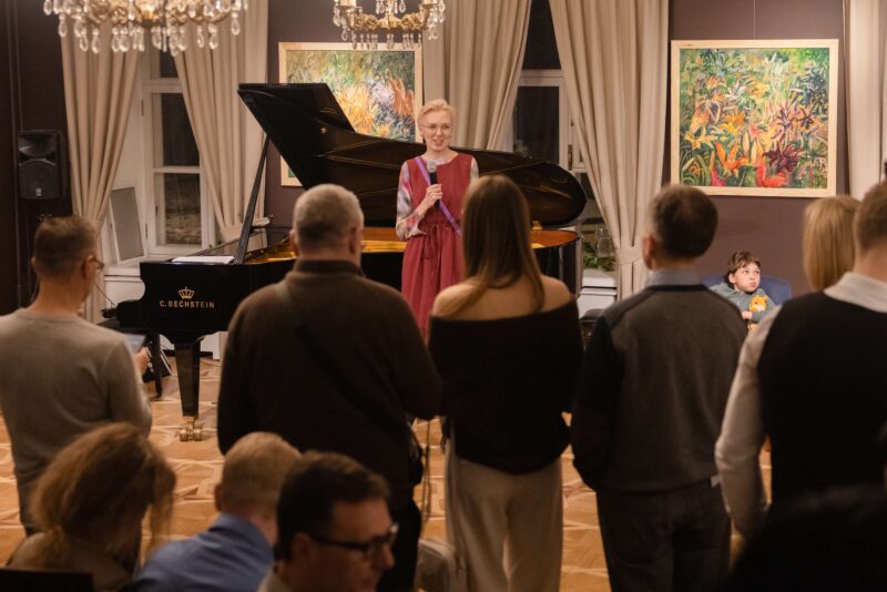 Дуэт Софьи Итиной на арфе и специалиста в области моды и искусства Андрея Аболенкина с художественным словом добавил особое звучание, предлагая слушателям новую перспективу на знакомые произведения. Сочетание арии Ленского из «Евгения Онегина» Чайковского и романа «Волшебная гора» Томаса Манна создали уникальную атмосферу и позволили зрителям углубиться в темы, которые исследуют оба произведения. Исполнение «Шагов на снегу» Дебюсси Инны Забрусковой на рояле Андрей Аболенкин сопроводил «Петербургскими повестями» Николая Гоголя. Отсыл на импрессионизм в музыке Дебюсси дал возможность ощутить гостям вечера глубокое художественное впечатление, в то время как использование произведения Андрея Платонова «Новое электричество» добавило современного звучания к этому взаимодействию. Такие параллели не только обогатили восприятие искусства, но и помогли создать глубокие эмоции и размышления у публики.