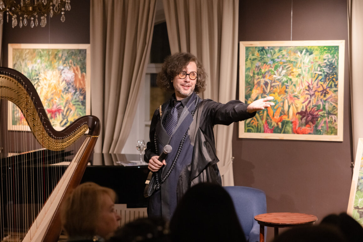 Дуэт Софьи Итиной на арфе и специалиста в области моды и искусства Андрея Аболенкина с художественным словом добавил особое звучание, предлагая слушателям новую перспективу на знакомые произведения. Сочетание арии Ленского из «Евгения Онегина» Чайковского и романа «Волшебная гора» Томаса Манна создали уникальную атмосферу и позволили зрителям углубиться в темы, которые исследуют оба произведения. Исполнение «Шагов на снегу» Дебюсси Инны Забрусковой на рояле Андрей Аболенкин сопроводил «Петербургскими повестями» Николая Гоголя. Отсыл на импрессионизм в музыке Дебюсси дал возможность ощутить гостям вечера глубокое художественное впечатление, в то время как использование произведения Андрея Платонова «Новое электричество» добавило современного звучания к этому взаимодействию. Такие параллели не только обогатили восприятие искусства, но и помогли создать глубокие эмоции и размышления у публики.