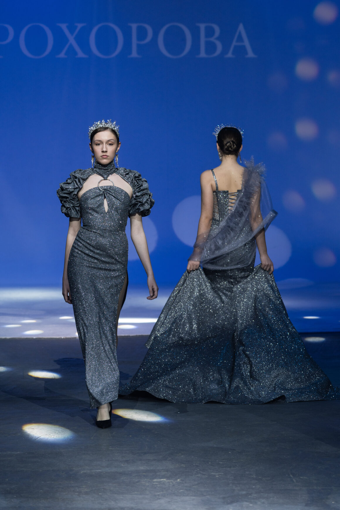 Новая коллекция «Холод вершин» дизайнера Ольги Прохоровой  вдохновлена красотой камня и ледяными вершинами гор.  В коллекции преобладает серо-чёрная гамма, имитирующая цвета холодных склонов. Платья, созданные на корсетной основе, подчёркивают все достоинства фигуры, а пикантные вырезы придают лёгкий налёт сексуальности. В качестве отделки использовались стекло, осколки зеркал, стразы, атласные ткани, фатин, а ткани с напылением подчёркивают красоту и холод камня. Героиня коллекции –  состоявшаяся леди, которая видит красоту мира, чувствует её, для этого ей не нужны яркие краски. Дизайнер раскрывает образ женщины с непростой судьбой, которая, несмотря ни на что, осталась женщиной, величественной и прекрасной. Холод – вне её, она — Женщина!