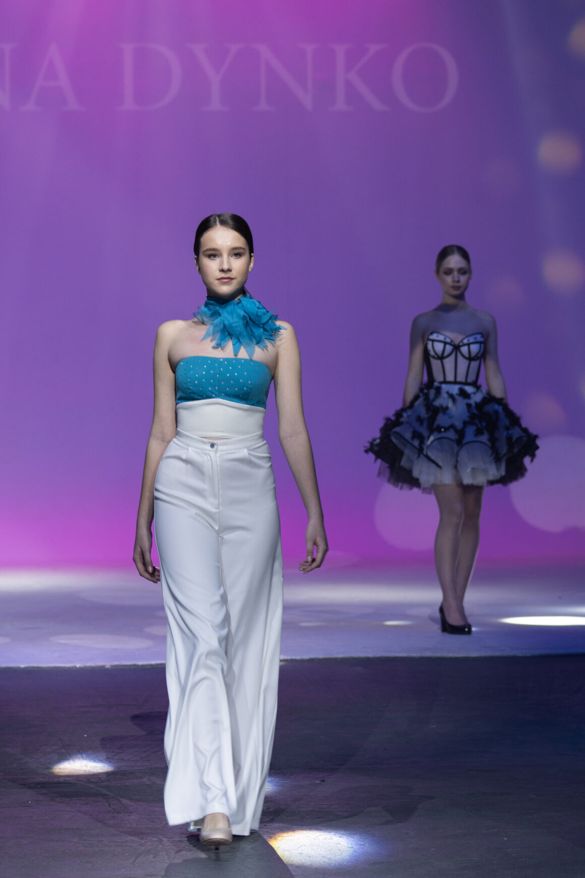 В своей коллекции «Ray of love» («Луч любви») дизайнер Валентина Дынко раскрывает образ уверенной в себе и одновременно романтичной леди. Она излучает сильный характер и нежность, с легкостью идёт к поставленным целям. Героиня имеет гибкий ум и чувство юмора, её ценности — любовь к себе, оптимизм, дружба и доброта. Эффект восприятия основан на сочетании плотных и лёгких тканей. Изюминкой декора является кропотливая ручная работа с использованием кристаллов, камней и лепестков, созданных вручную. Благодаря корсету, моделирующему фигуру, создаётся изящный женственный образ, а пышные юбки зрительно делают силуэт ещё более утончённым.