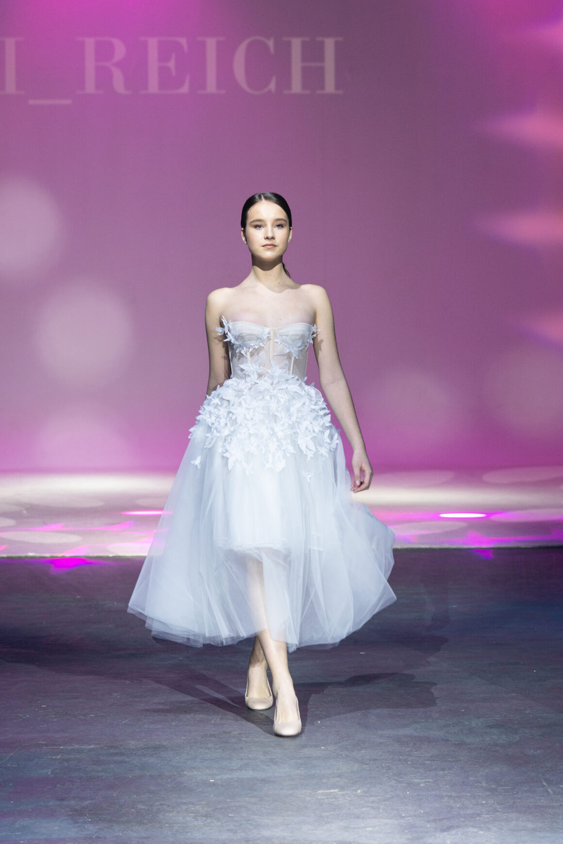 Коллекция Екатерины Райх  «First exit» демонстрирует, что современные женщины, которые приспособились к нынешнему ритму жизни, имеют возможность оставаться естественными, женственными, сексуальными. В концепции всех образов дизайнер отталкивается от романтизма и миксует его с современностью и динамикой.