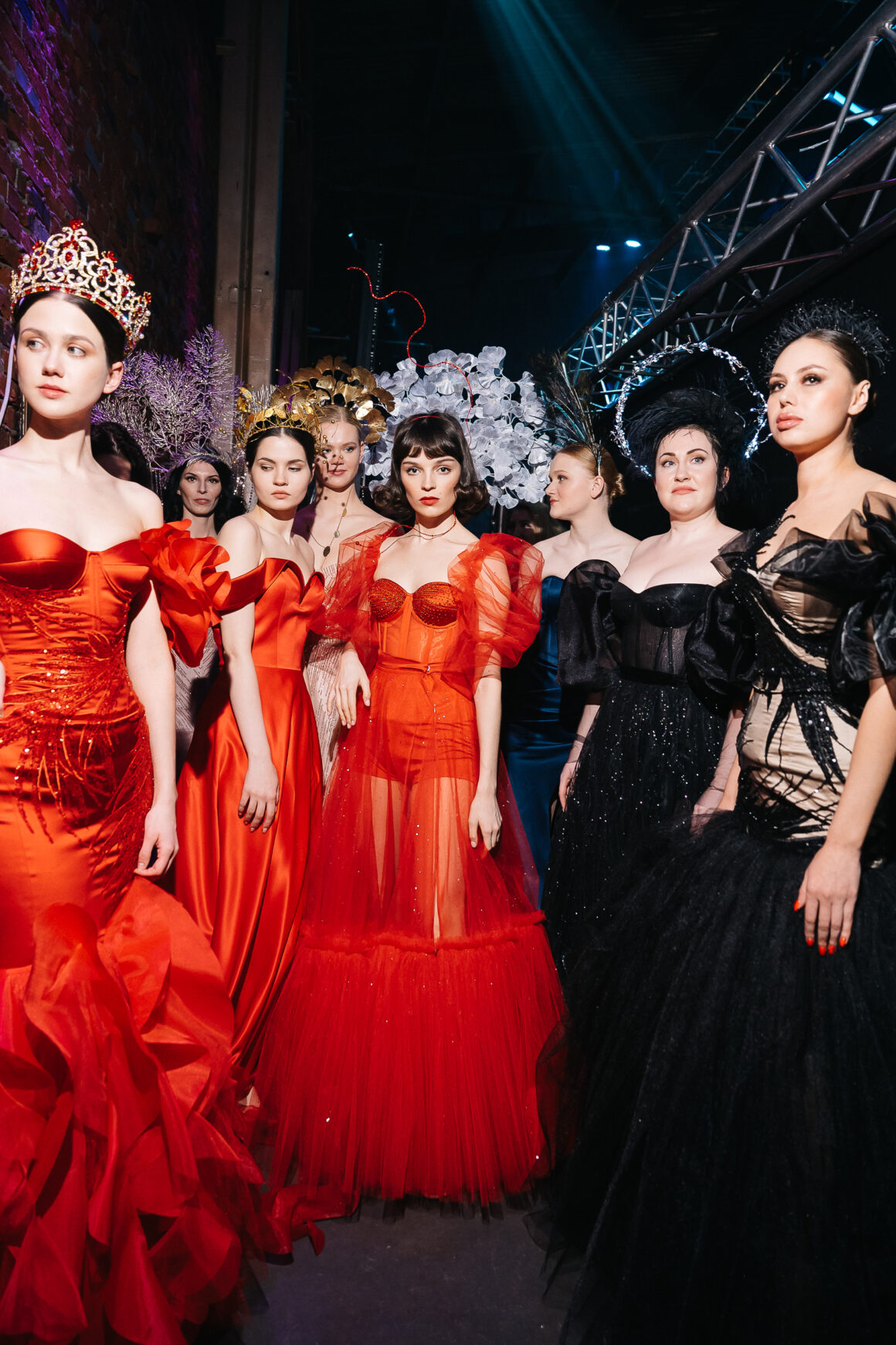 Коллекция дизайнеров Татьяны и Анастасии Углицких — «Great (Великая)» — представляет варианты праздничных нарядов, которые по всей сложности и неординарности дают вызов традиционным платьям. Коллекция построена на переливе и оттенках золота, которое добавляет шарм и делает особый акцент на изделиях. Татьяна и Анастасия Углицких органично сочетают современные технологические и дизайнерские решения с историческими нотками.  Женственность и роскошь в коллекции «Великая» раскрывается на контрасте объёма императорских размеров юбки и очень узкого корсета. Дизайнеры используют в платьях отделку и кружева, камни. Сложная конструкция корсета поддерживается авторской технологией, которая создает утончённый силуэт.