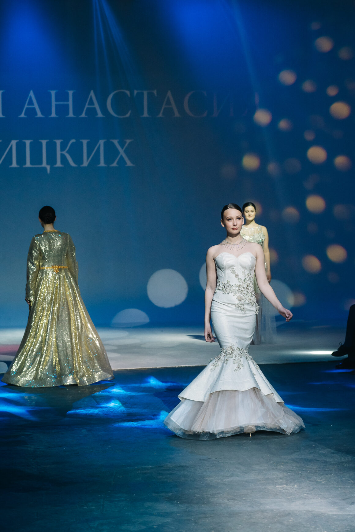 Уже с первых шагов модели коллекции «Звёздный блеск» от дизайнера Барышниковой Ольги задало настроение всему мероприятию. Ведь роскошный дизайн вечерних нарядов для красной дорожки практически никого не может оставить равнодушным. В коллекции акцентировано внимание на женственных формах: утрированно тонкая линия талии, широкие бёдра, подчёркнутая грудь. Особое значение уделено ручной работе — отделке кружевом, замысловатому декору, вышивке бисером. При создании платьев с использованием натуральной цветовой гаммы дизайнер отдала предпочтение стилю New look, подчёркивающему все достоинства женской фигуры. А головные уборы, напоминающие отблеск тысячи ярких кристаллов на ночном небе, привлекли внимание к каждой модели.