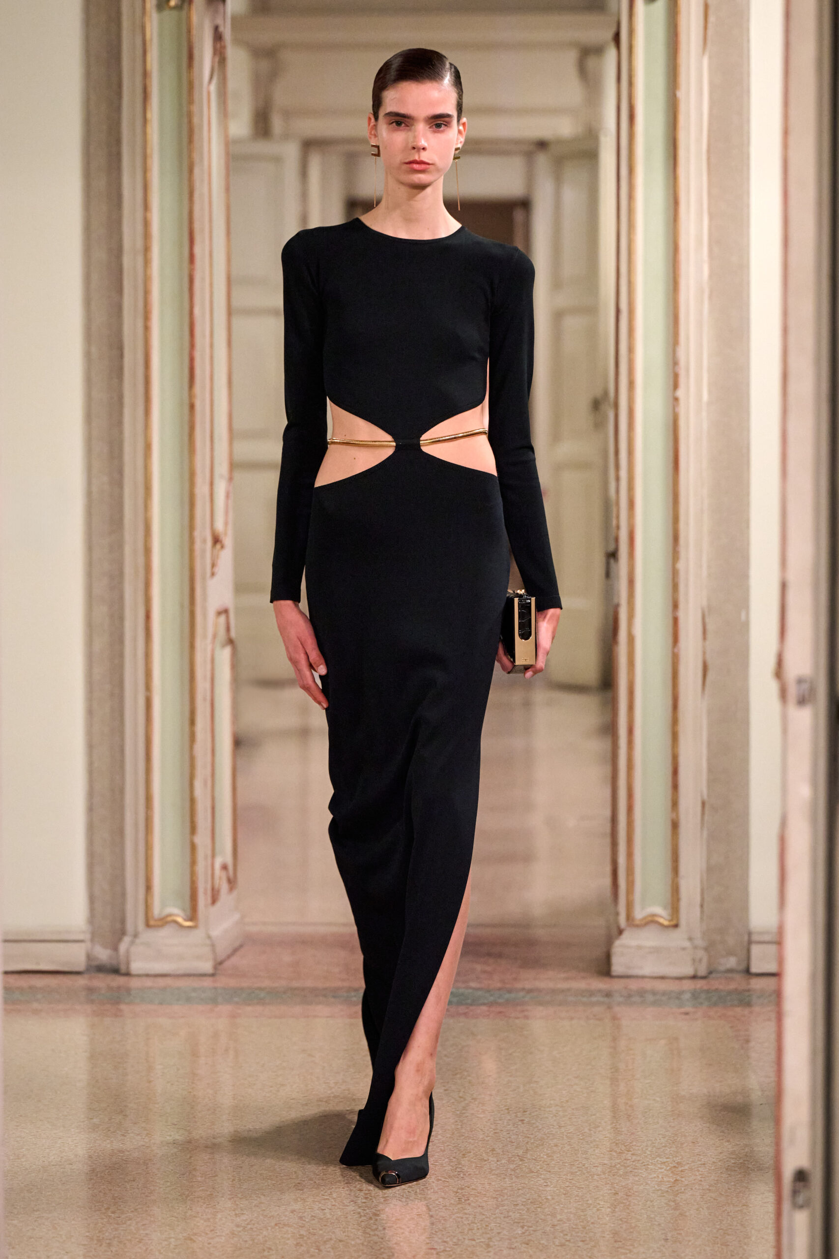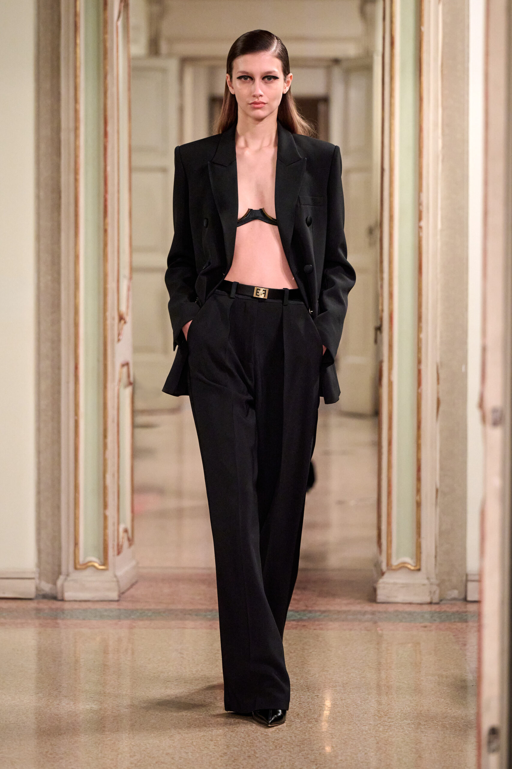 Острые силуэты оттачивают тело с четкостью, выделяя плечи и талию. Ткани и текстуры  — глянцевые и скульптурные или матовые и объемные — создают соблазнительную игру.