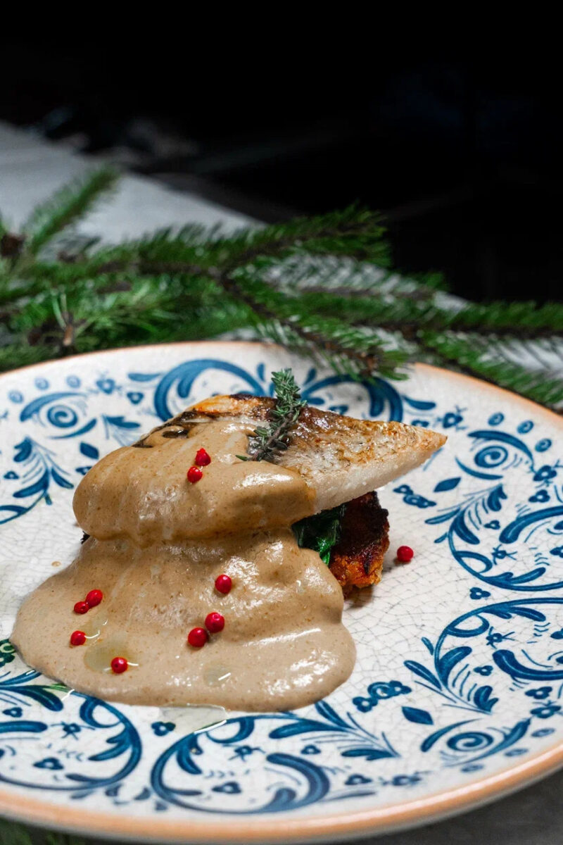 • Муксун со шпинатом и драником (1350 руб.)