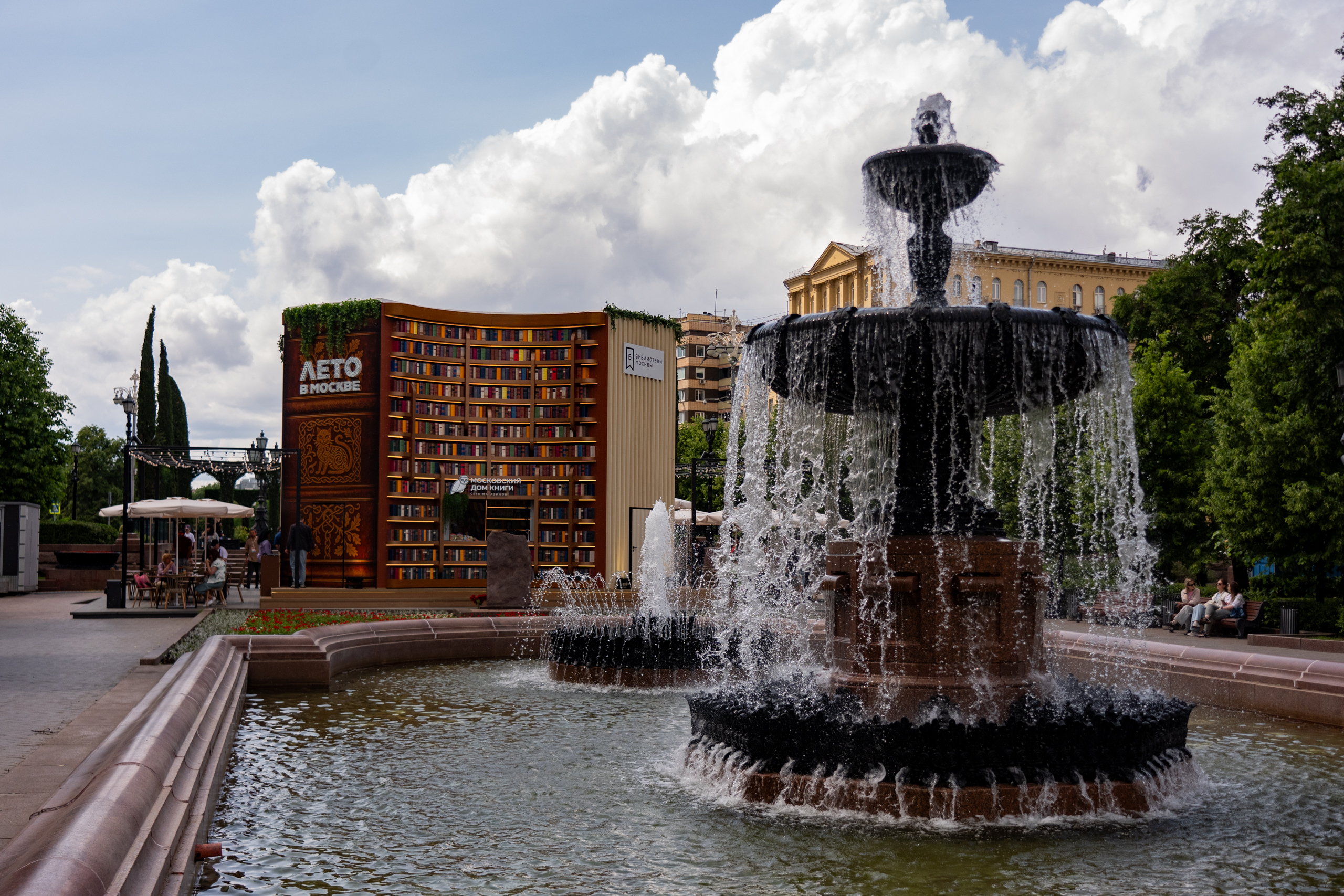 Проект «Книга в городе» проходит в рамках масштабного проекта «Лето в Москве». Три уникальные площадки – в Пушкинском сквере, у Фонтана Витали и на Сретенском бульваре – открыты с 12:00 до 22:00 со вторника по воскресенье. «Книга в городе» – это библиотеки под открытым небом, мастер-классы, лекции, литературные чтения и знакомство писателями, поэтами, артистами – всего более 700 культурных событий. Вход на площадки свободный, информацию о регистрации на мероприятия и актуальную программу смотрите на сайте книгавгороде.рф .