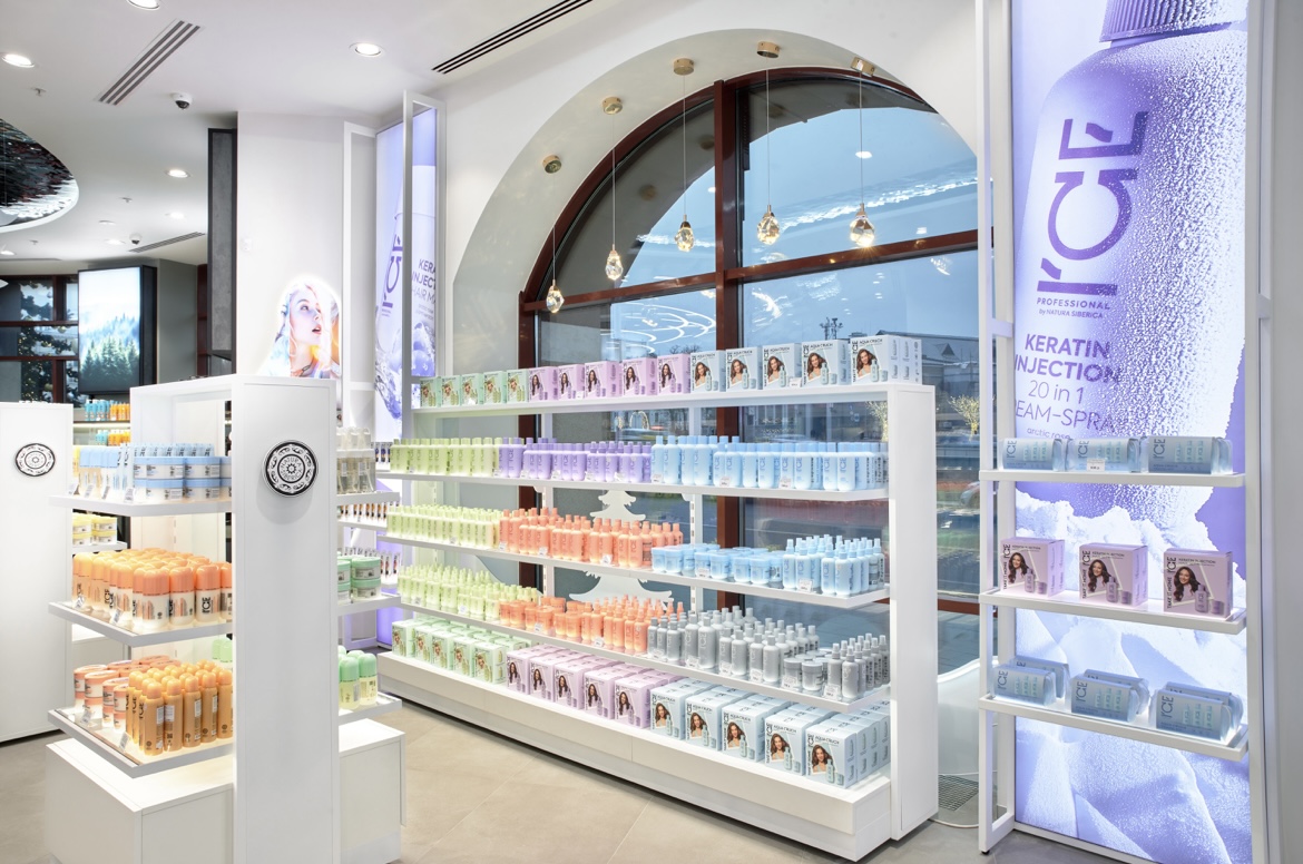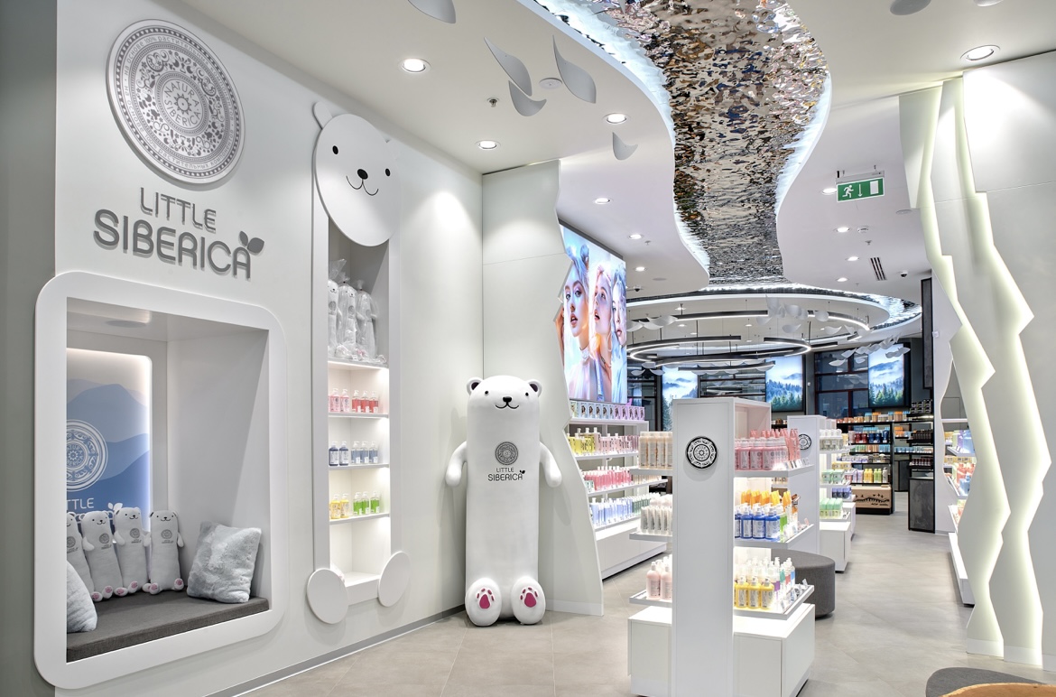 Путь покупателя продуман до мелочей и построен так, чтобы познакомить его со всеми новинками и классическими бестселлерами марки. Из «классической» зоны Natura Siberica гости попадают в трендовую зону профессионального бренда по уходу за волосами ICE Professional, через детскую зону – в фитобар, где можно передохнуть и выпить сибирского травяного чая, любуясь в панорамное окно на жизнь большого города.