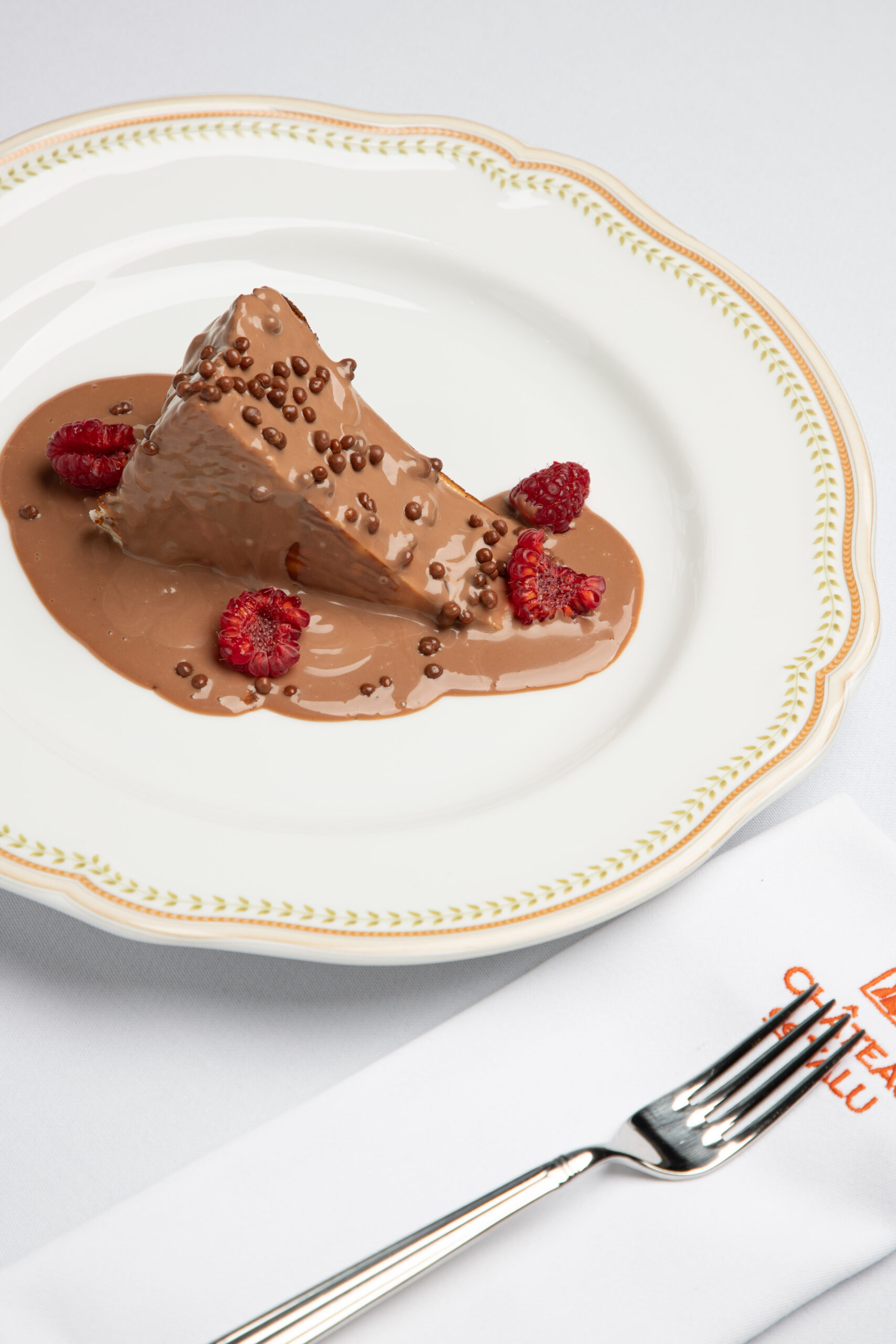 Сезонное меню Château de Talu включает легкие салаты из локальных овощей, освежающие холодные супы и горячие блюда с морепродуктами и ягненком.