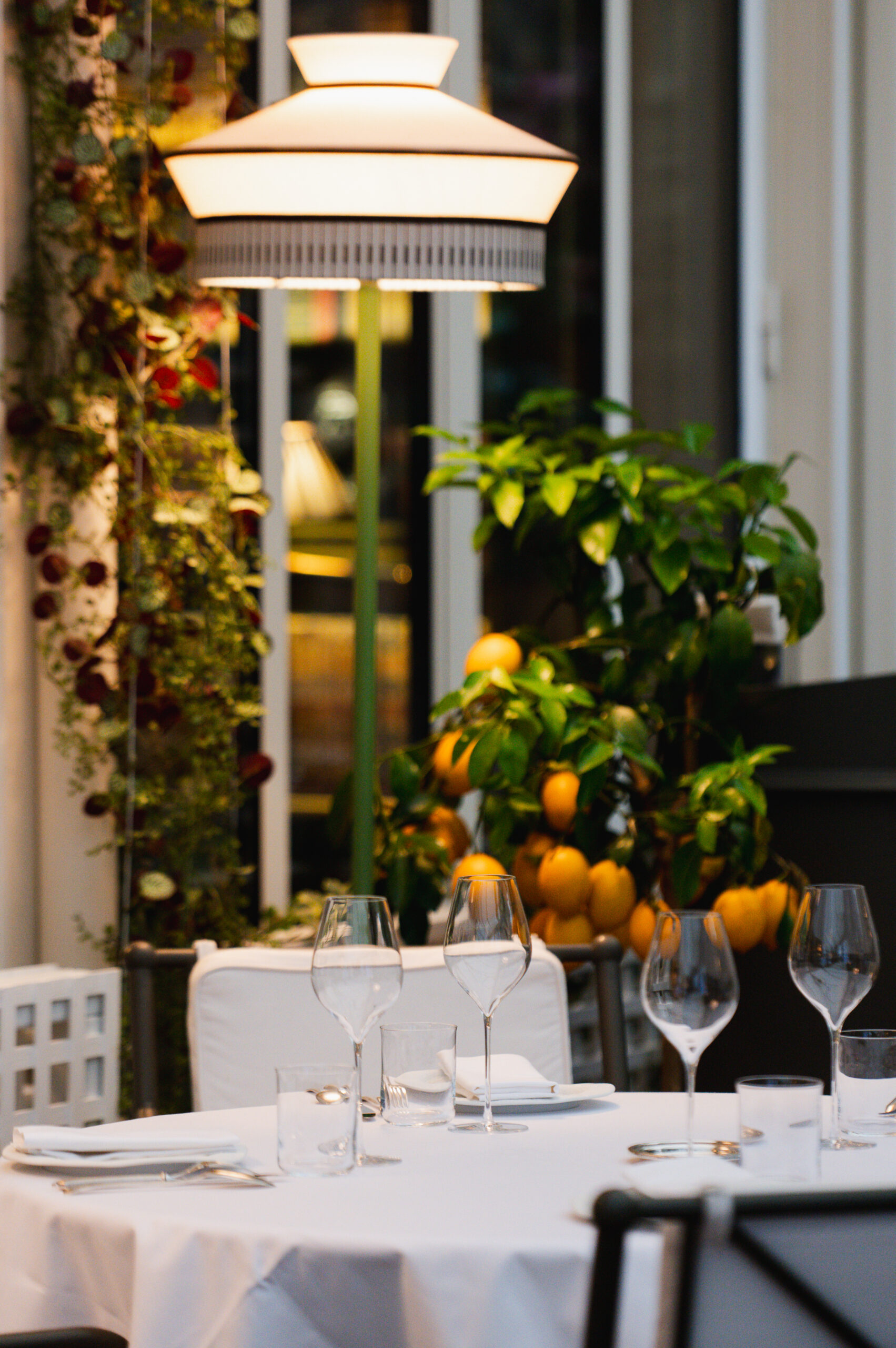 Новый гастрономический проект находится в непосредственной близости от роскошной библиотеки Герцога Де Морни, расположенной на первом этаже отеля. Мастер-флорист Батист Питу придумал и реализовал его элегантную обстановку таким образом, чтобы посетители могли отвлечься от суеты Парижа: белые скатерти на столах, старинные ковры на паркетном полу, лимонные деревья и пышный плющ.