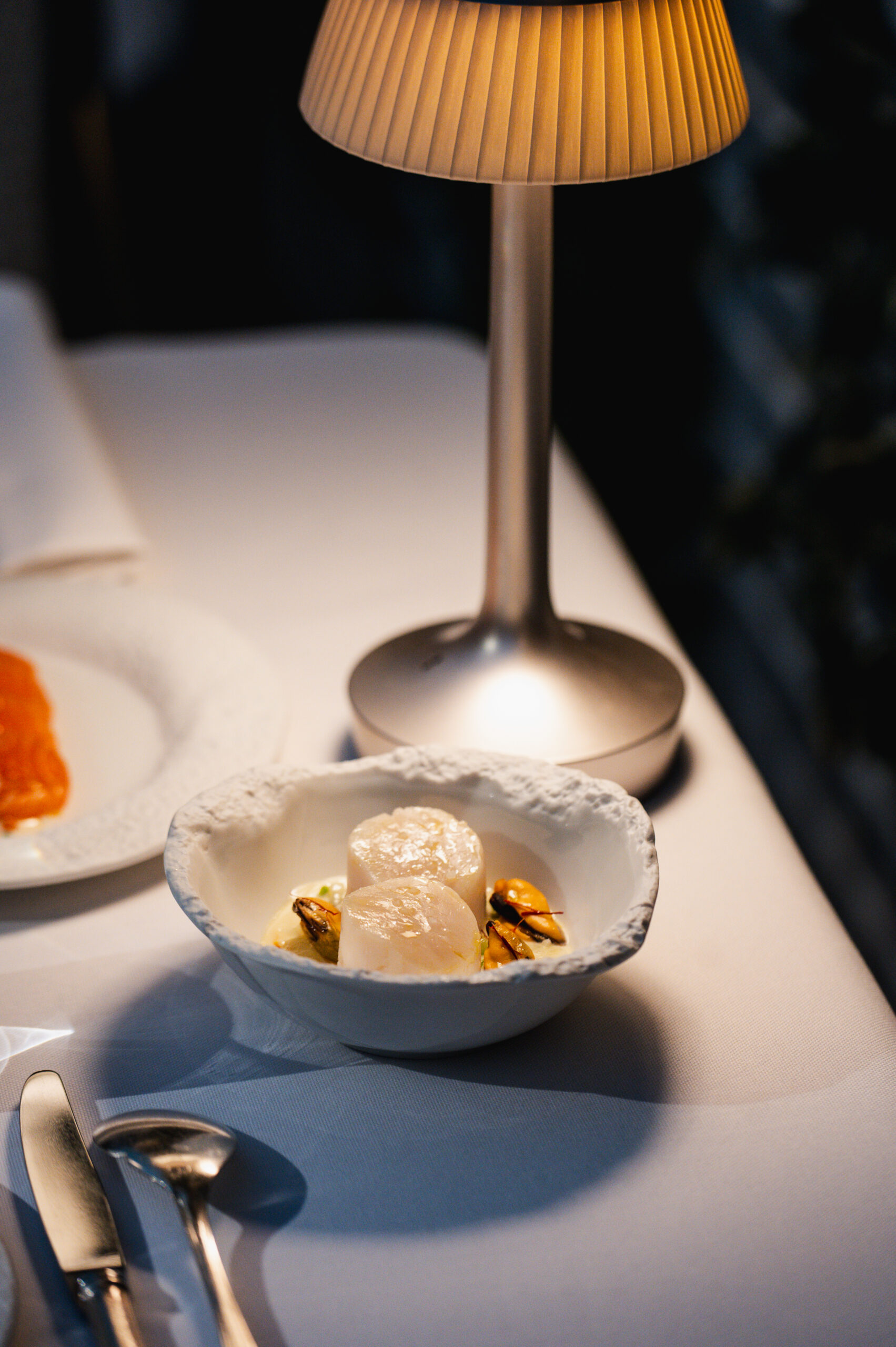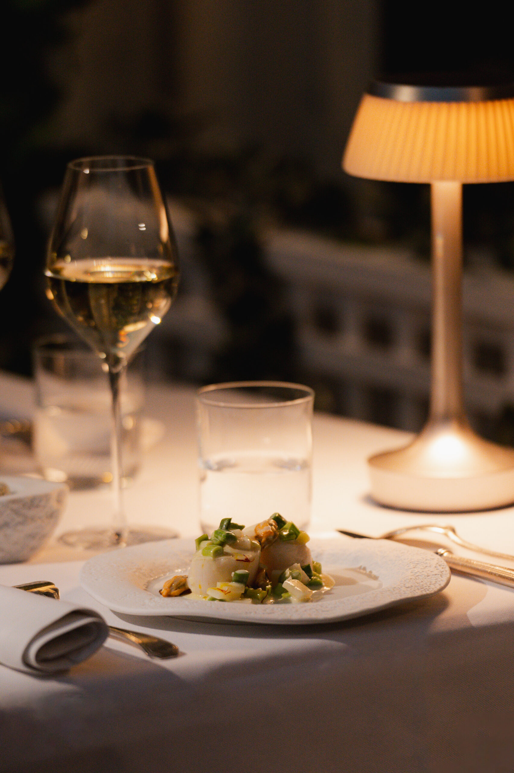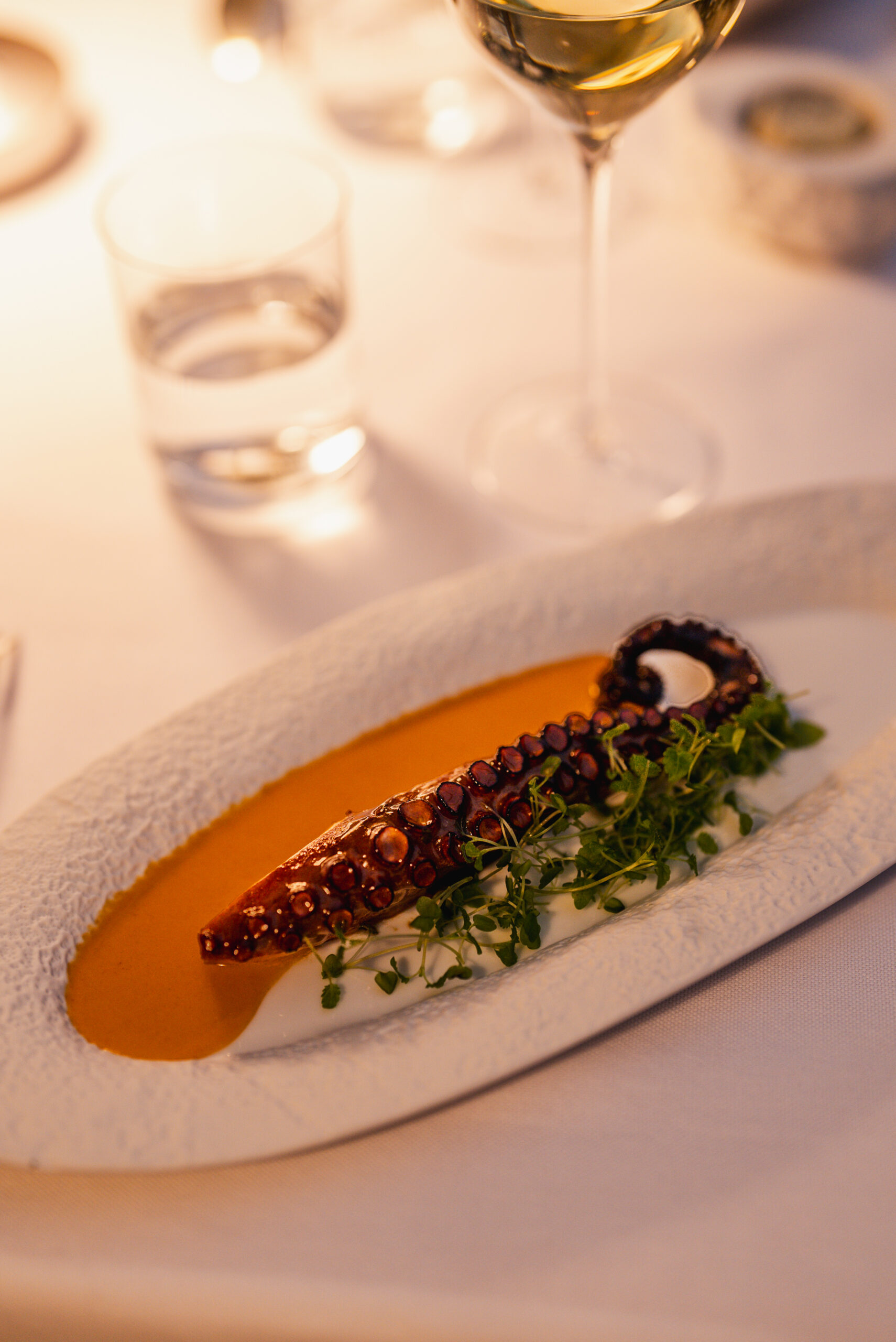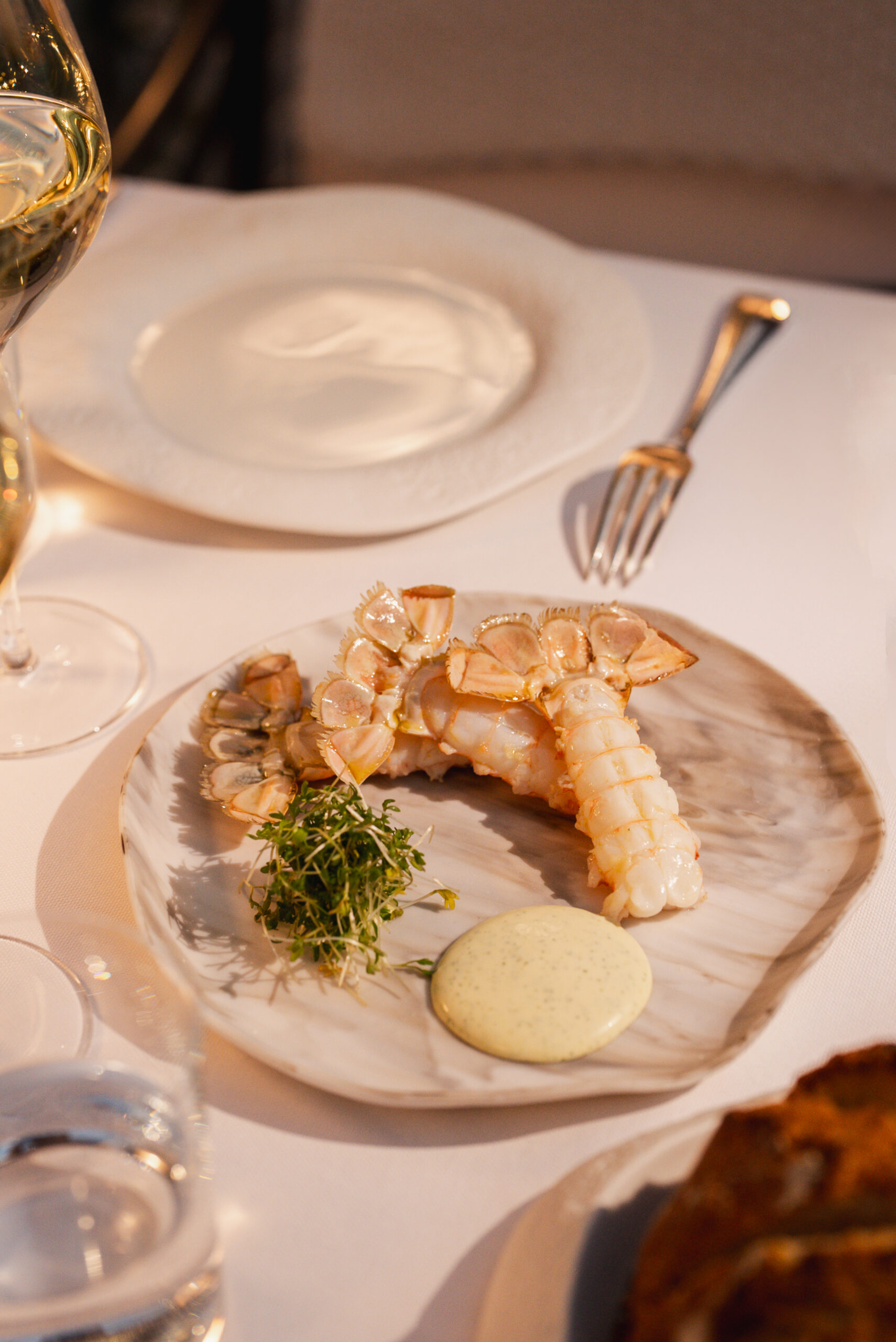 В очередной увлекательной главе своего кулинарного творчества шеф-повар с 3 звездами «Мишлен» Жером Банктель воплотил идеи на морскую тематику, отдавая дань уважения своим корням в Бретани и строго следуя сезонности в рыболовецких хозяйствах. Основной акцент в меню сделан на следующие позиции: холодные устрицы, гребешки в рыбном соусе «коттриад», осьминог, приготовленный на углях Бинчотан и жареный морской окунь.