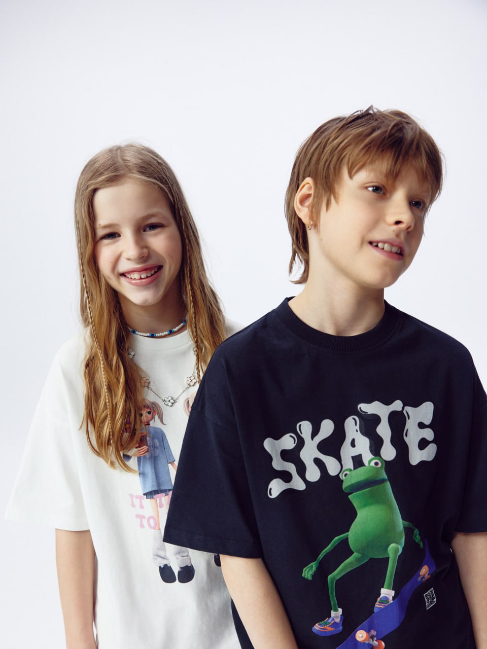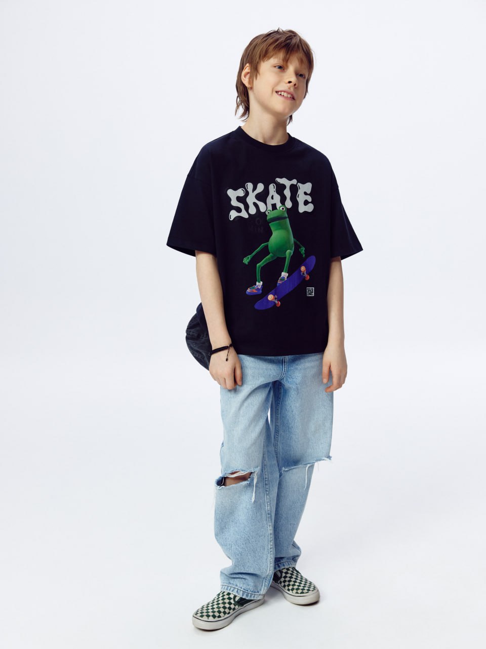 В AR-коллекцию вошли 9 футболок и лонгсливов от 122 до 164 размера. Каждую вещь украшает графический принт с озорными персонажами в стиле streetwear и скейтерской культуры. Для активации дополненной реальности необходимо отсканировать с помощью мобильного устройства QR код на изделии. Например, лягушка начнет выполнять трюки на