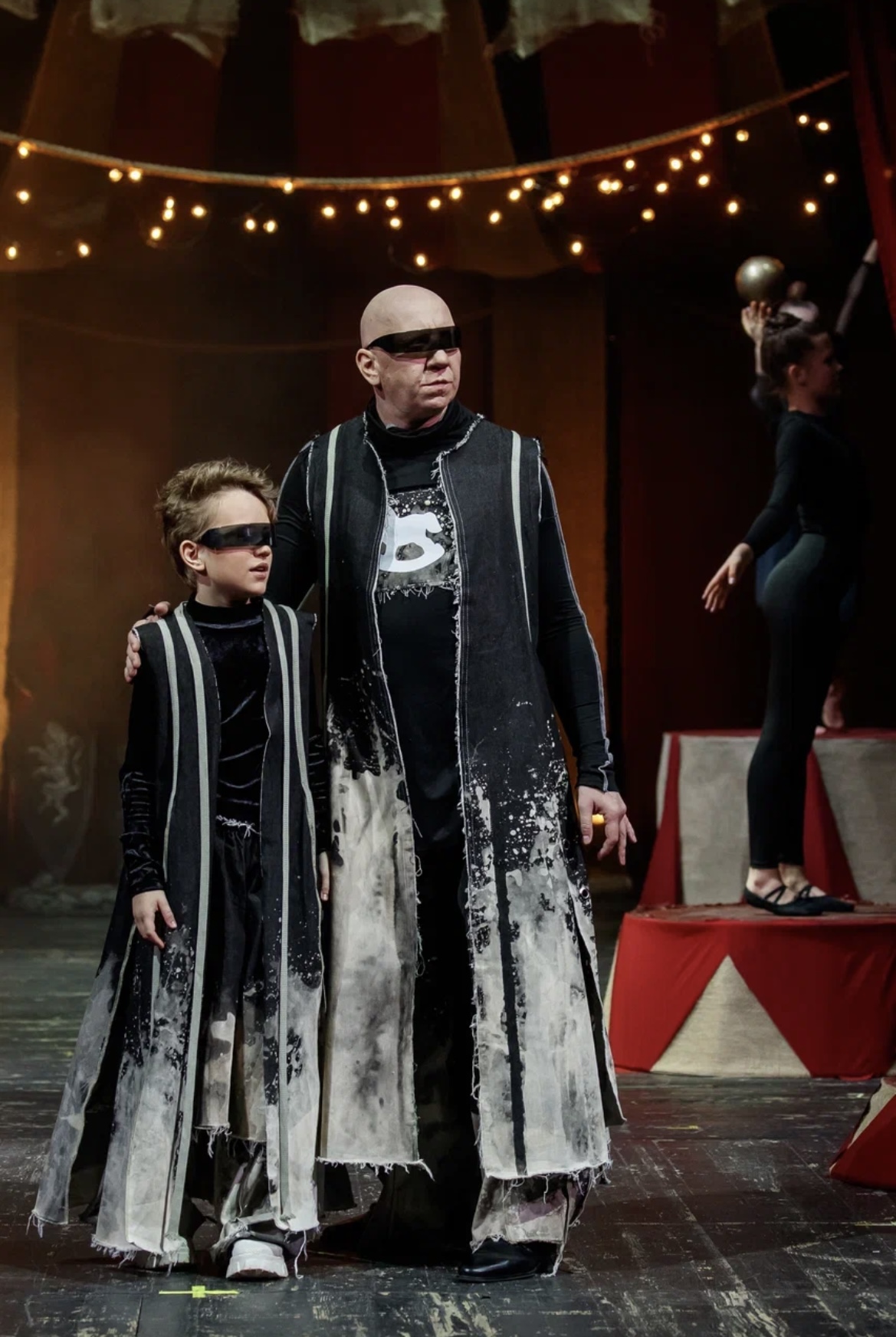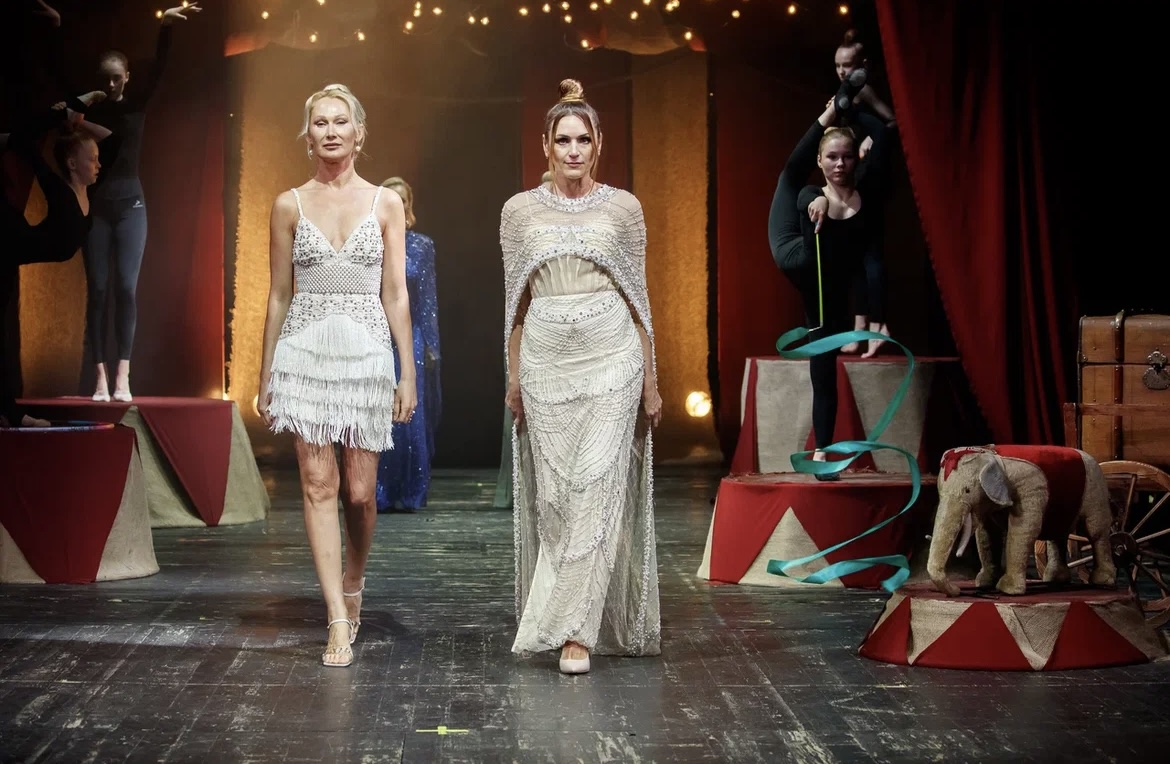 Старинный театр и цирк – концепция мероприятия. Дефиле моделей сопровождалось акробатическими фигурами юных гимнасток.