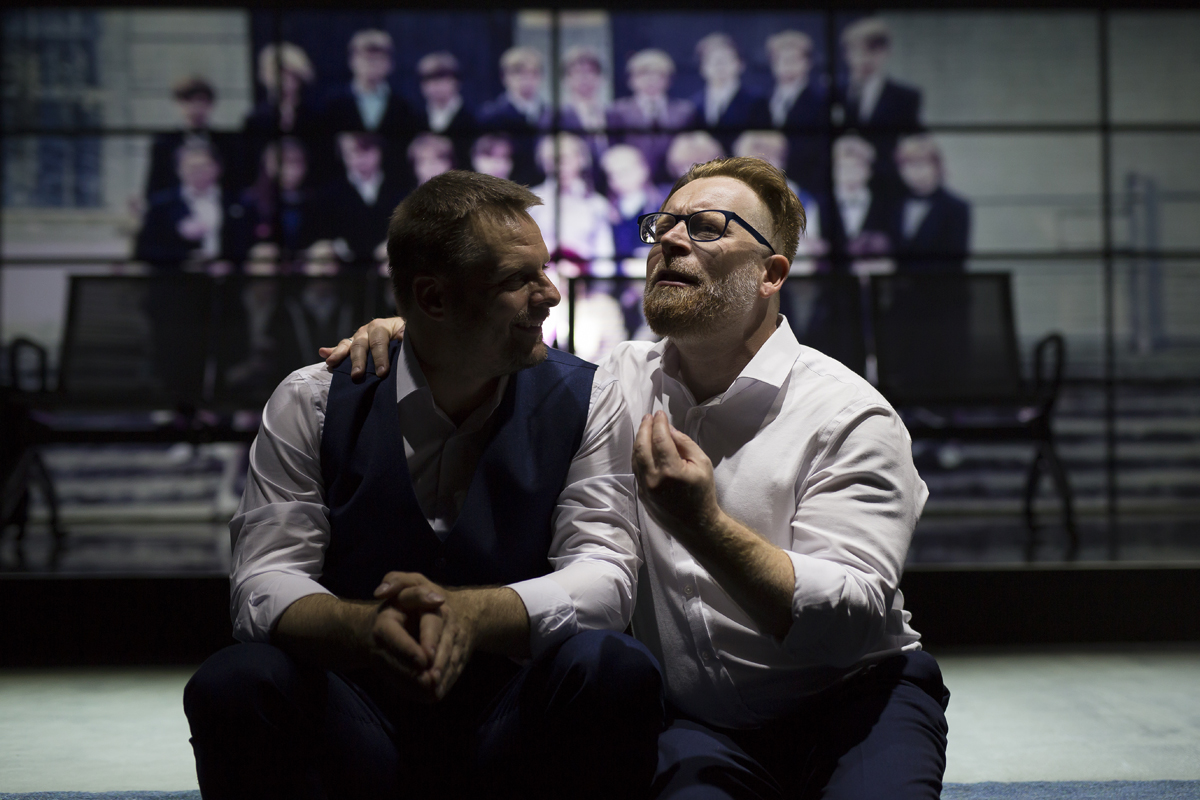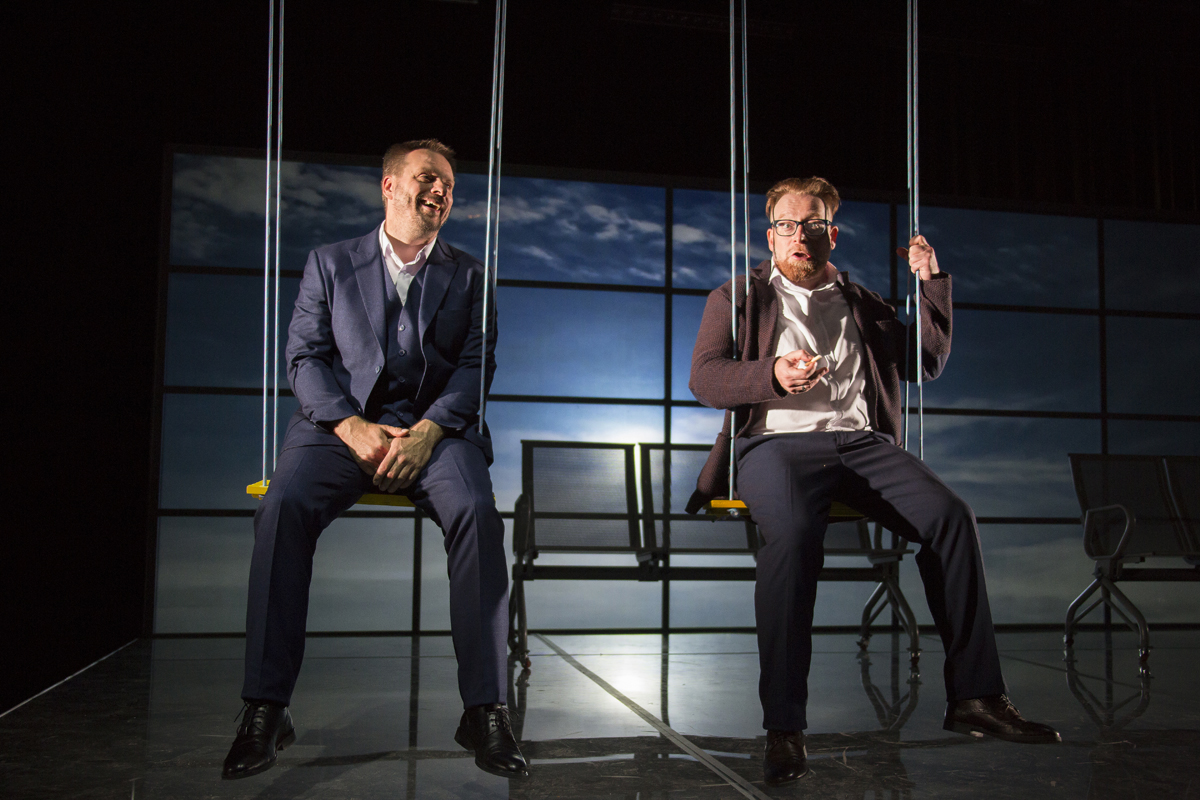 Действие спектакля происходит в зале ожидания аэропорта, где встречаются два лучших друга, у которых всегда было слишком мало времени для того, чтобы встретиться и сказать такие важные друг другу слова. Но теперь оно есть. Один из друзей, которого играет актер Александр Носик, недавно ушел из жизни. А второму, в исполнении обаятельного Григория Данцигера, не терпится узнать, что же там – за чертой.