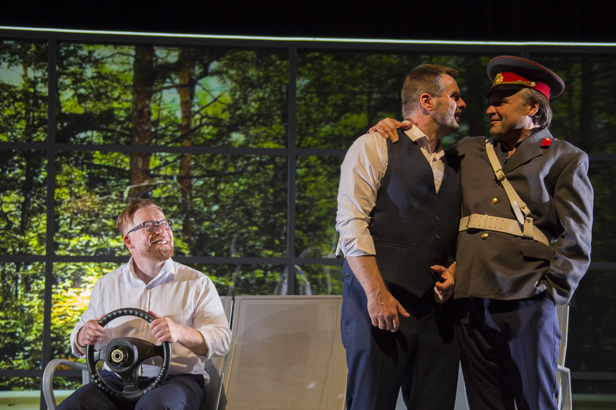 О спектакле: два лучших друга встречаются в очень необычном зале ожидания аэропорта. Они говорят о прошлом, вспоминают самые веселые моменты их жизни, вспоминают безумные выходки, романы, приключения, и людей, с которыми их свела судьба. Но есть причина. Один из них недавно ушел из жизни, а второй очень хочет знать, что ждет его самого за той чертой с надписью «выход на посадку».