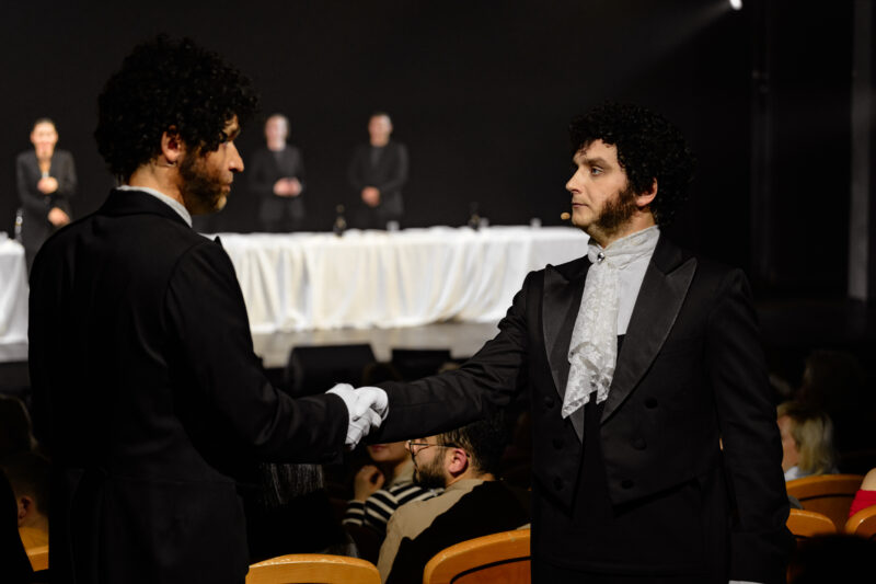 «Ай да Пушкин! Ай да…!» — гармоничный синтез абсолютно разных жанров искусства. Герои Пушкина оживают во всей палитре эмоций, а сам поэт, словно искусный конферансье, дирижирует процессом, виртуозно соединяя сказочные миры с реальностью. Пушкина в здесь целых два – юный хулиган Саша и зрелый мастер, «солнце русской поэзии», Александр Сергеевич.