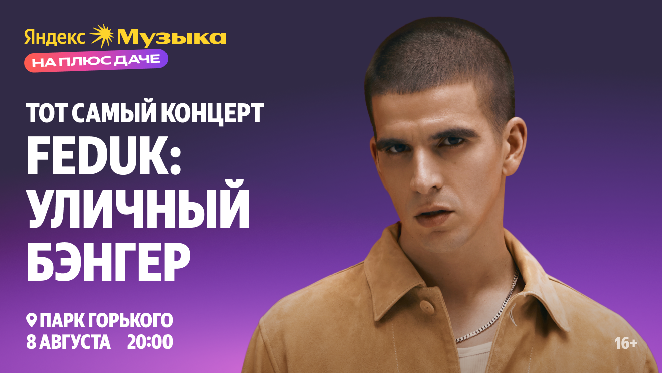 «Тот самый концерт FEDUK. Уличный бэнгер» станет завершающим событием летней программы Яндекс Музыки на Плюс Даче в Парке Горького, где осуществлялись смелые идеи ведущих артистов современности и исполнялись мечты слушателей. Этим летом подписчики Яндекс Плюса уже успели насладиться презентацией нового альбома SODA LUV в атмосфере китча телешоу 90-х и 00-х, послушать акустические песни под звездами на концерте группы ZOLOTO и спеть любимые треки со своими кумирами на «Караоке мечты».