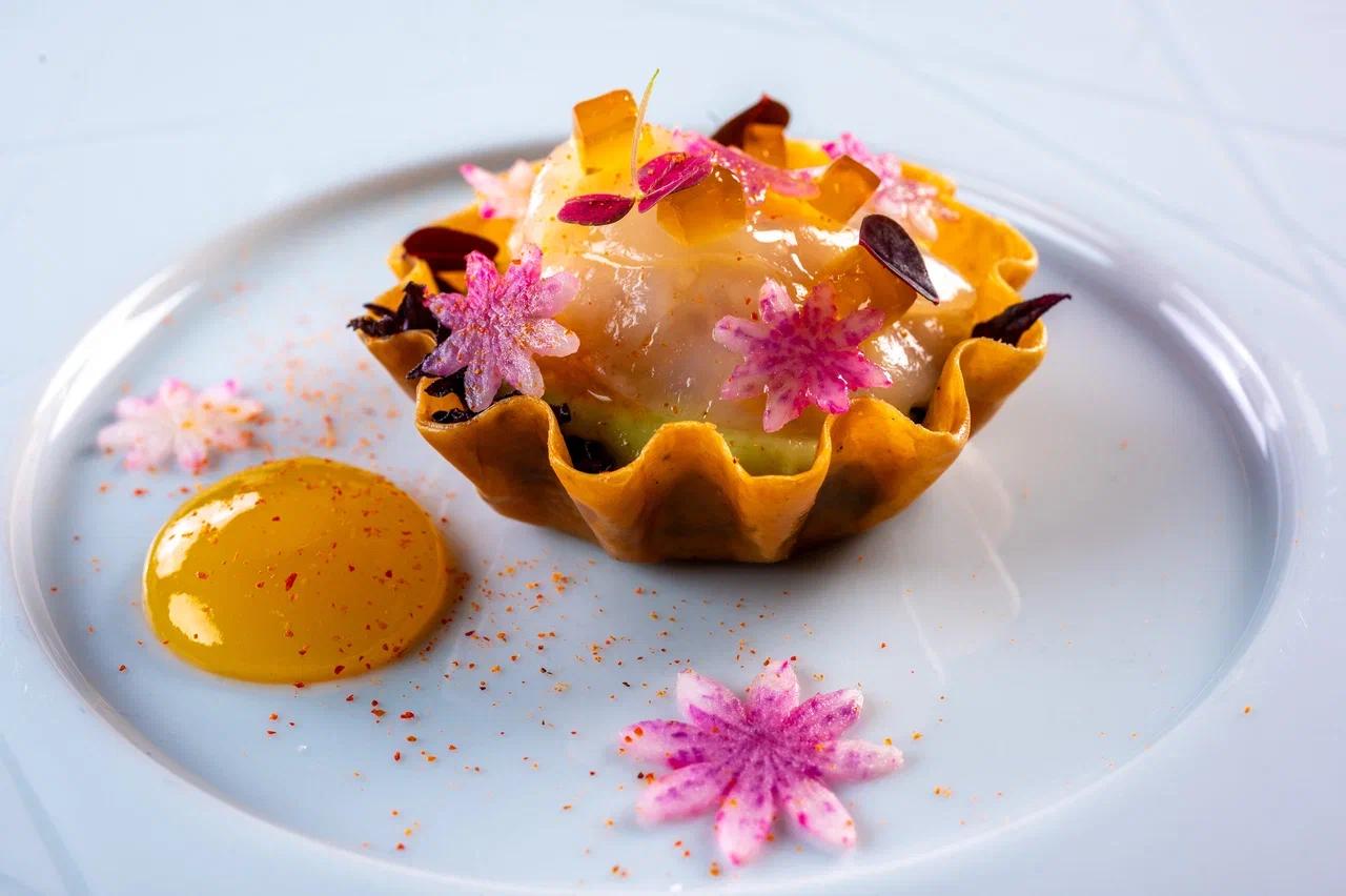 Вечер начнется с гармоничного сочетания двух amuse-bouche. Давид Эммерле предложит гостям профитроли с муссом из камчатского краба, украшенные черной икрой, а Кемаль Джан Юрташ – блюдо турецкой кухни «чиг-кёфте», завернутое в нежное тесто для пахлавы с фисташковой крошкой. Затем гостей ждет холодная закуска – крудо из креветки и сахалинского гребешка с муссом из авокадо и хрустящей тарталеткой, дополненной мандариновым гелем и вуалью из желе с добавлением лемонграсса, – блюдо, созданное Давидом Эммерле.