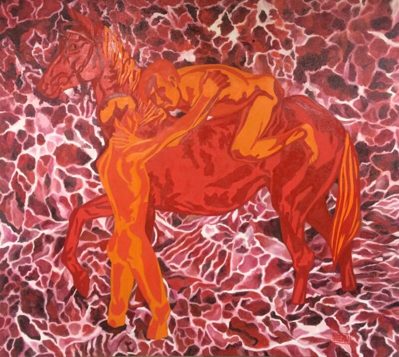 Центральное место выставки занимают три больших живописных полотна: «Кузьма Петров-Водкин и Красный Конь» (Игорь Соловьев), «Универсальная Река Абсолютной Любви» (Дмитрий Плоткин), «Конь-Блед» (Александр Элмар). Проект «Красный Конь Революции» возник еще в 1997 году. Он был призван отразить цикличность исторических эпох, социальной жизни, а также судьбы каждого отдельного человека. За основу Дмитрий Плоткин взял картину Кузьмы Петрова-Водкина «Купание красного коня». По словам художника, она была ложно воспринята как революционный манифест. На самом деле, произведение гораздо глубже.