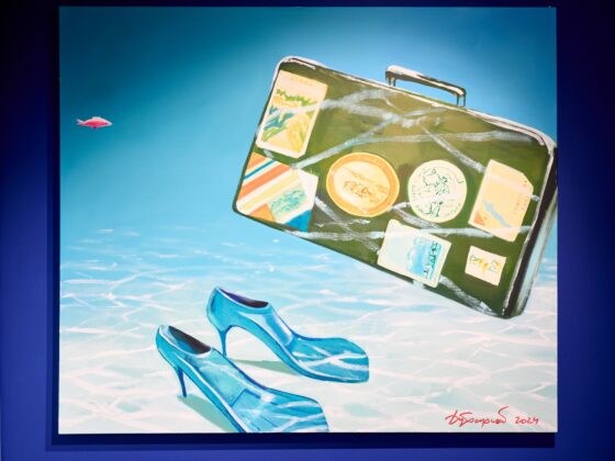 Экспозиция стала настоящим перформансом. Помимо картин на выставке можно увидеть фотографии мастеров Александра Элмара и Игоря Соловьева, а также керамические скульптуры.