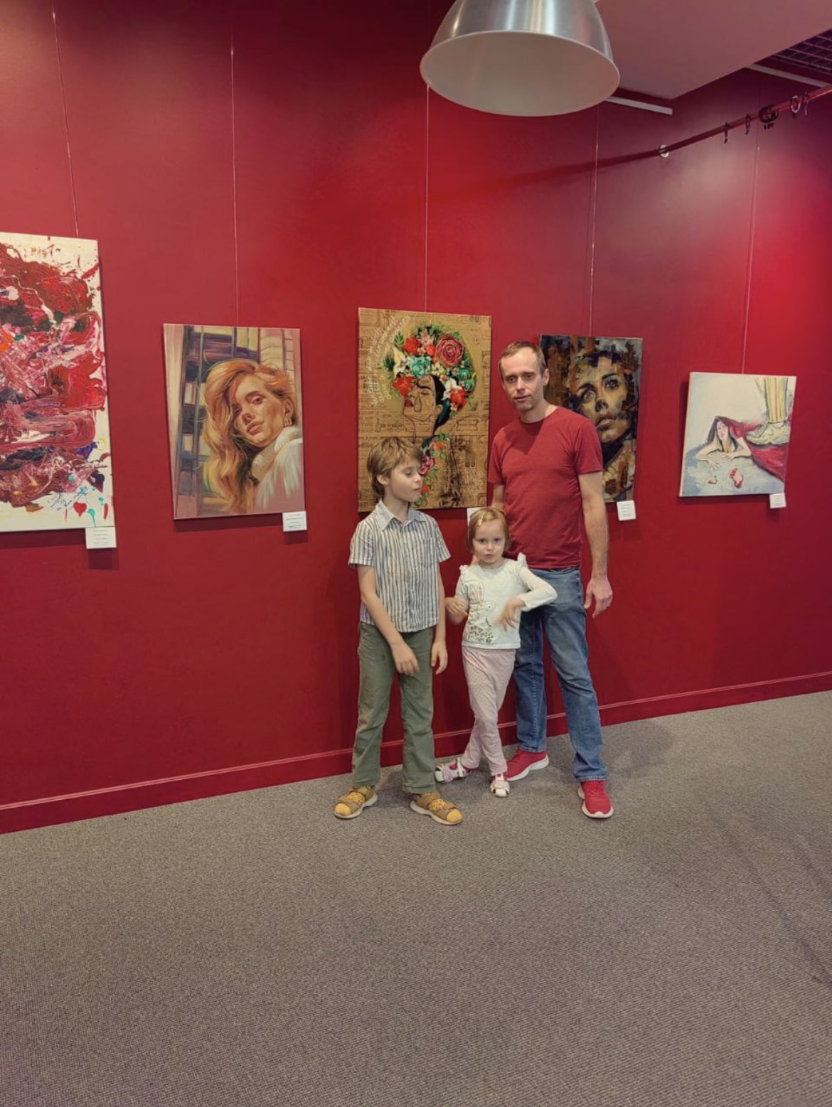 Традиционно вернисаж начался с экскурсии по постоянной экспозиции «Эрьзя-Центра». Куратор выставок Международного фонда искусств имени С.Д. Эрьзи Анна Терентьева познакомила гостей арт-пространства с биографией и творчеством великого скульптора XX столетия Степана Эрьзи. После чего гостей пригласили в выставочное пространство центра на третьем этаже, где прозвучали приветственные слова арт-куратора Влады Просвиркиной, а также авторов работ, а также была представлена экскурсия по выставке. Несмотря на обилие разных техник и художественных направлений организаторам удалось организовать экспозицию как единое цельное пространство. Стоит отметить, что сюжеты произведений также отличаются колоссальным разнообразием. На стенах и арт-объектах мы видим натюрморты, портреты и абстрактные изображения. Одна из таких картин родилась на вечеринке по случаю Дня Рождения художника Федора Жербина. На полотне даже можно увидеть пожелания автору.