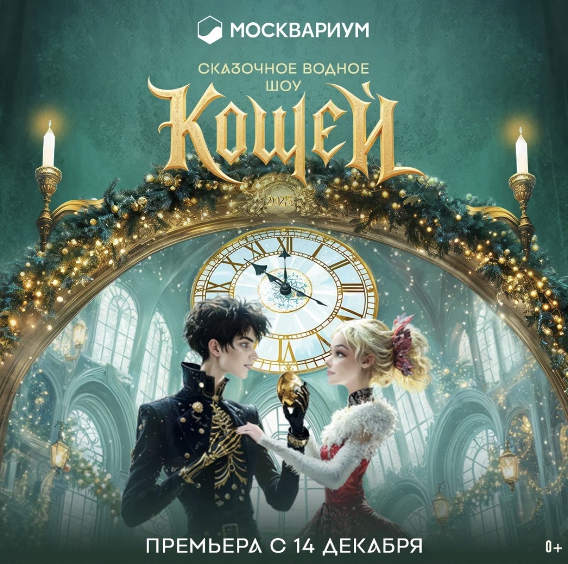 14 декабря 2024 года в «Москвариуме» впервые покажут сказочное шоу «Кощей». На большой водной сцене появятся знакомые каждому с детства герои – Кощей, Баба Яга, Снегурочка и Дед Мороз. Представление будет идти все новогодние праздники и продлится до 12 января.