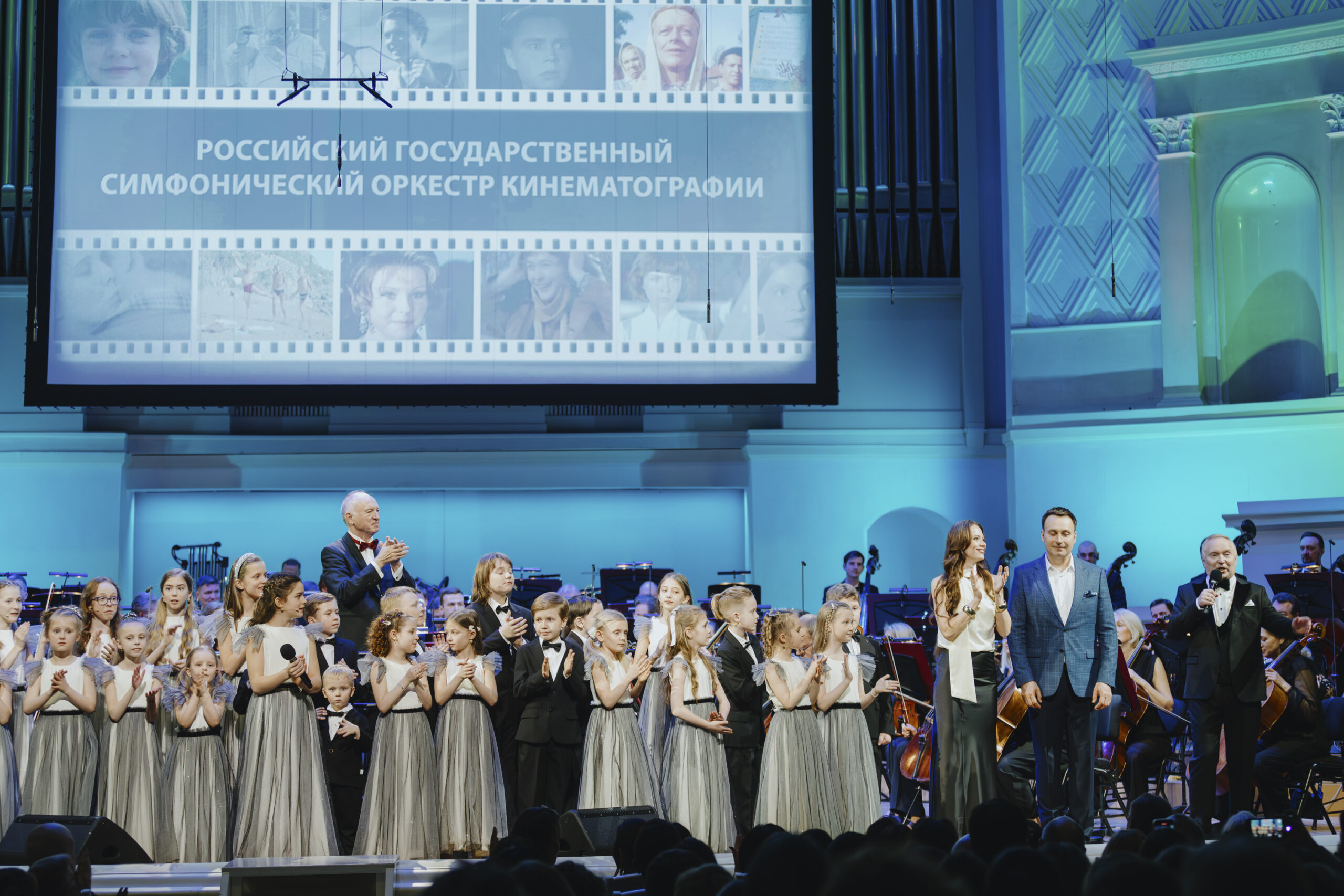 Прозвучала музыка из любимых фильмов. Почетными гостями концерта стали композитор Максим Дунаевский, актер и режиссер Владимир Грамматиков, актриса Ирина Шевчук и генеральный директор Киностудии Горького Юлиана Слащева.
