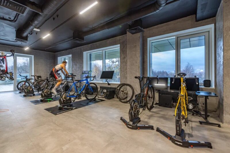 Опытные тренеры проводят персональные и групповые тренировки для клиентов. Здесь можно заниматься на современных тренажерах: велостанках Magene T600, профессиональных беговых дорожках, а также в зонах силового и функционального тренинга. Для восстановления сил доступны различные программы, предусмотрен массажный кабинет.